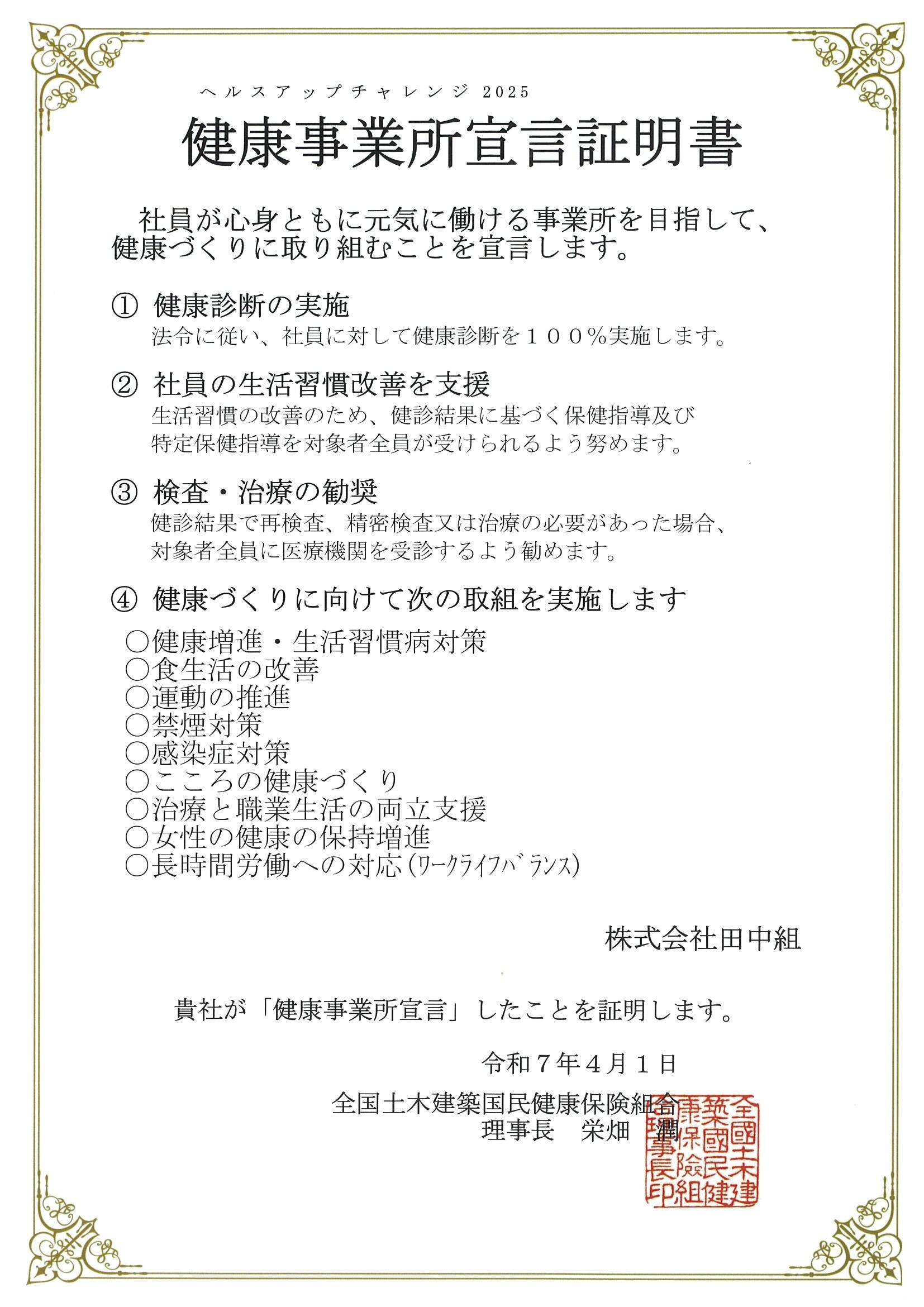 健康経営を取り組むうえで、加入している保険組合の応援事業「ヘルスアップチャレンジ」に当社も参加しております。